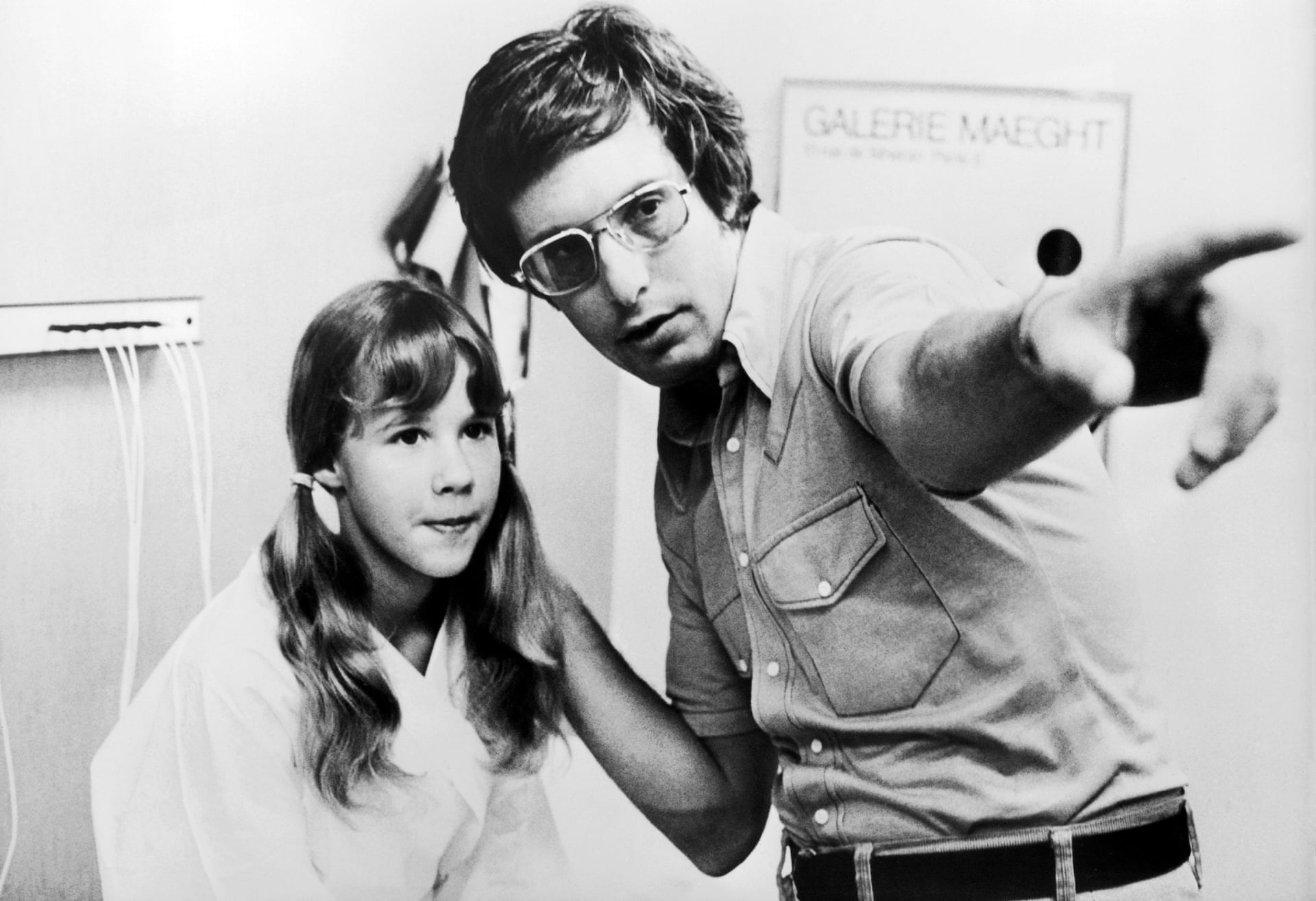 William Friedkin directs Linda Blair, who plays the possessed girl Regan MacNeil, on set of The Exorcist.