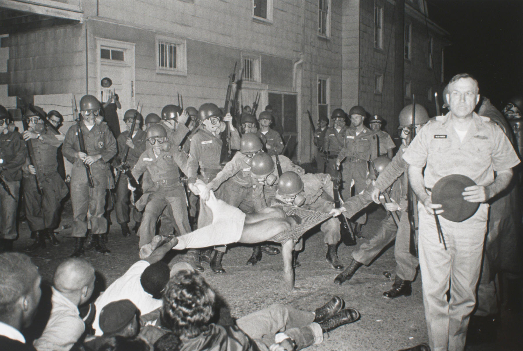 “Clifford Vaughs, SNCC photographer, is arrested by the National Guard.” 1964.