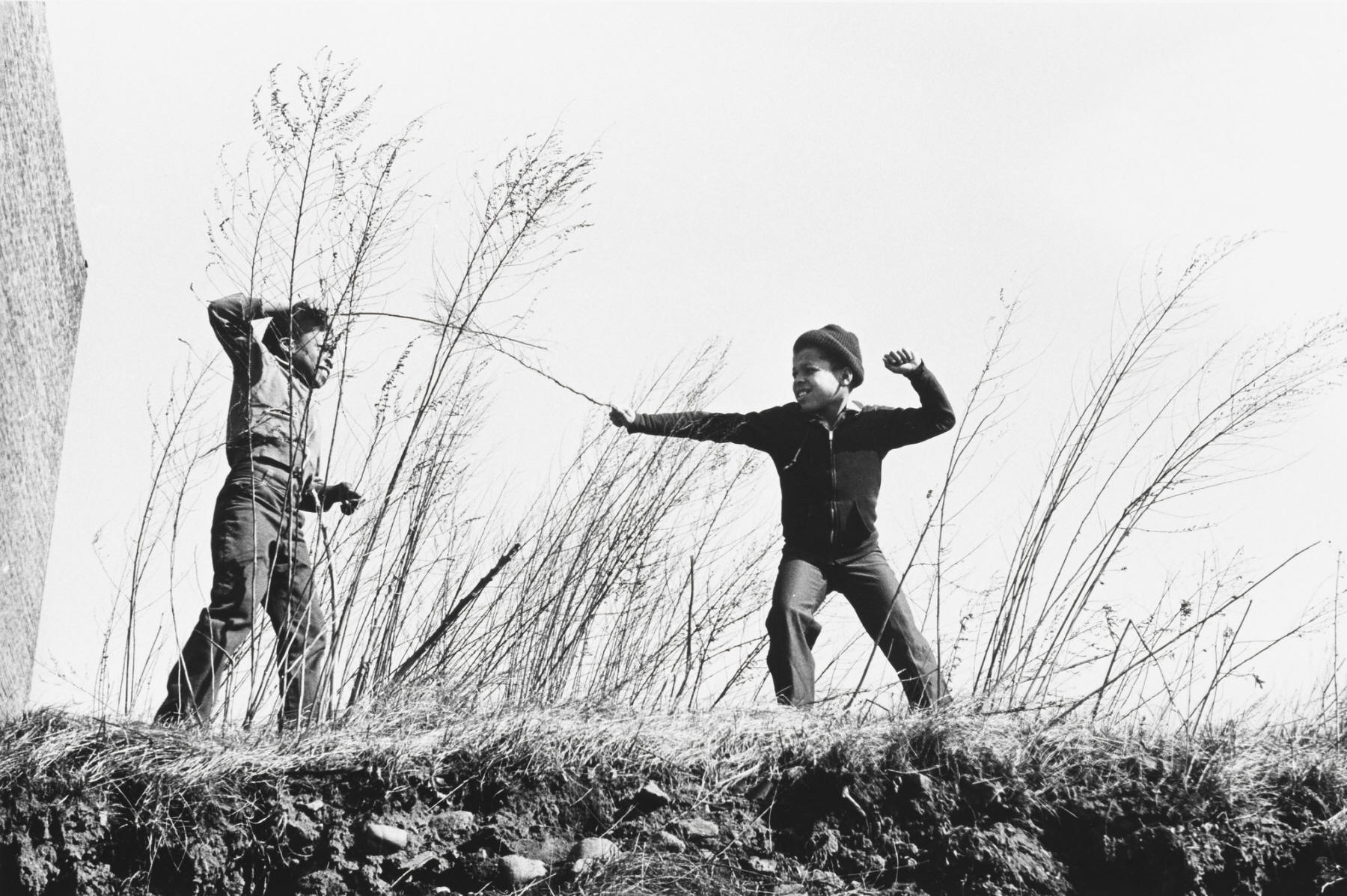 Kids fencing. Bathgate Avenue and 174th Street. 1976-82.