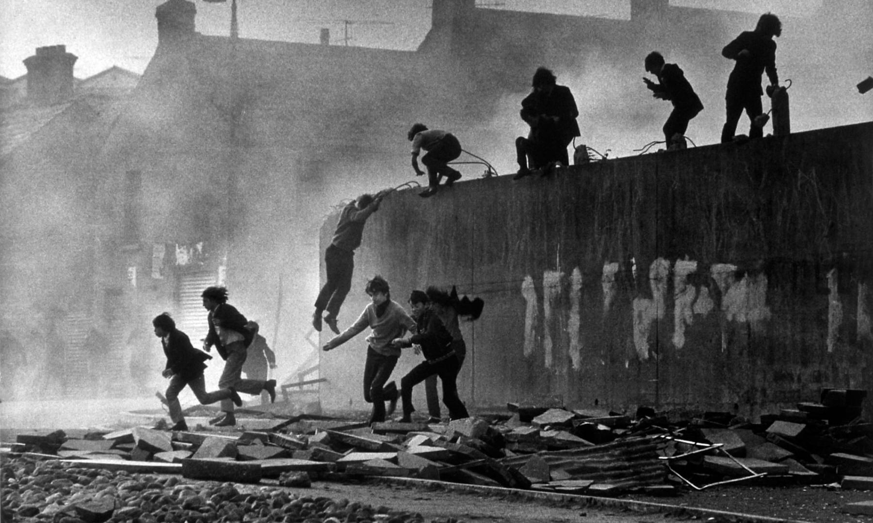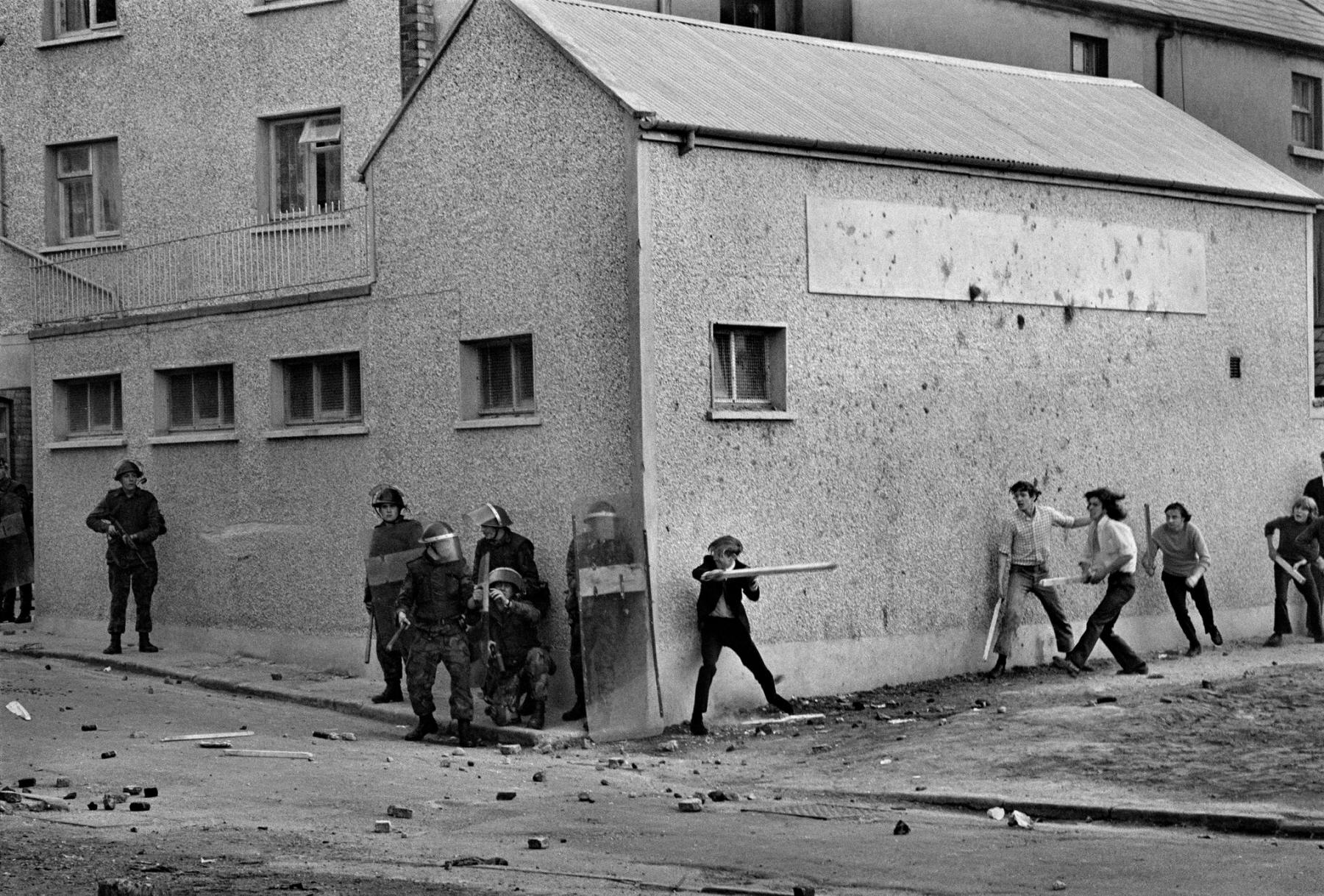 Derry youths throw petrol bombs at the RUC during the Battle of the Bogside in August 1969.