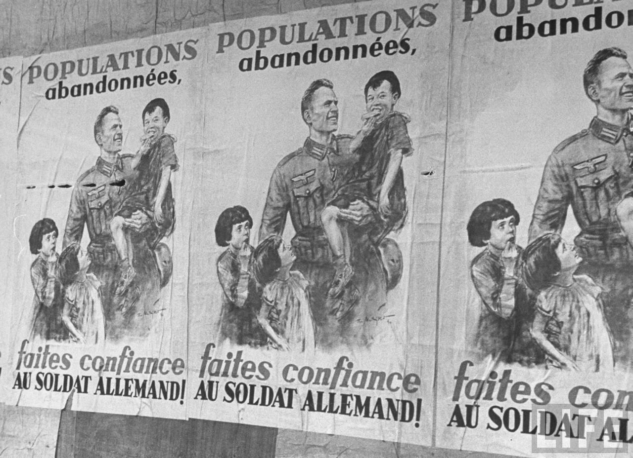 German propaganda poster in French stating "Abandoned Populations, Have Trust in the German Soldier" re German occupation of much of the country.