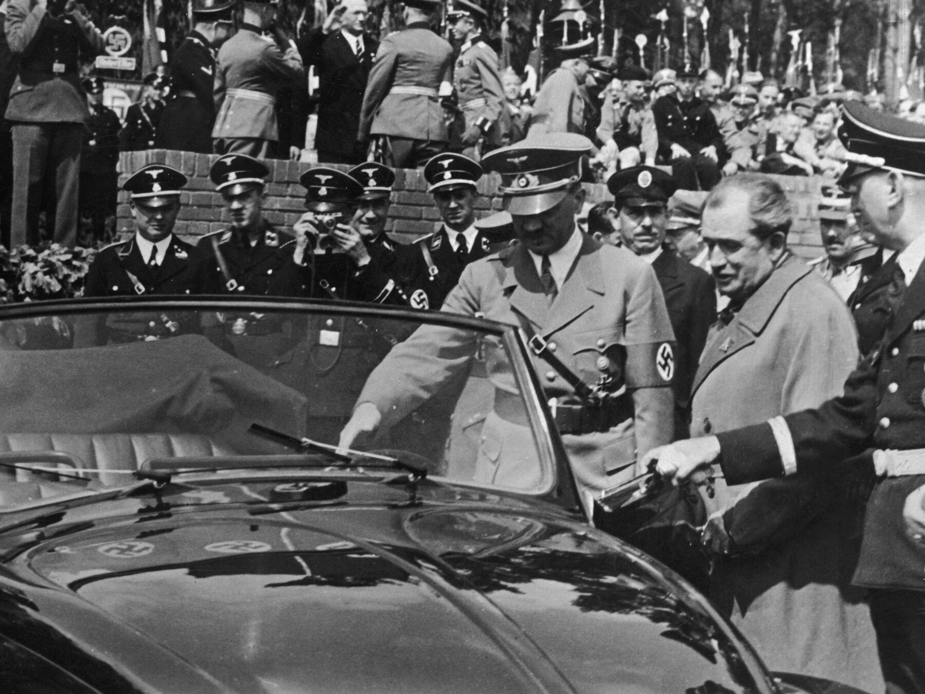Alfred Rosenberg, left, with Hitler and Friedrich Weber, right, during the Munich Putsch in 1923.