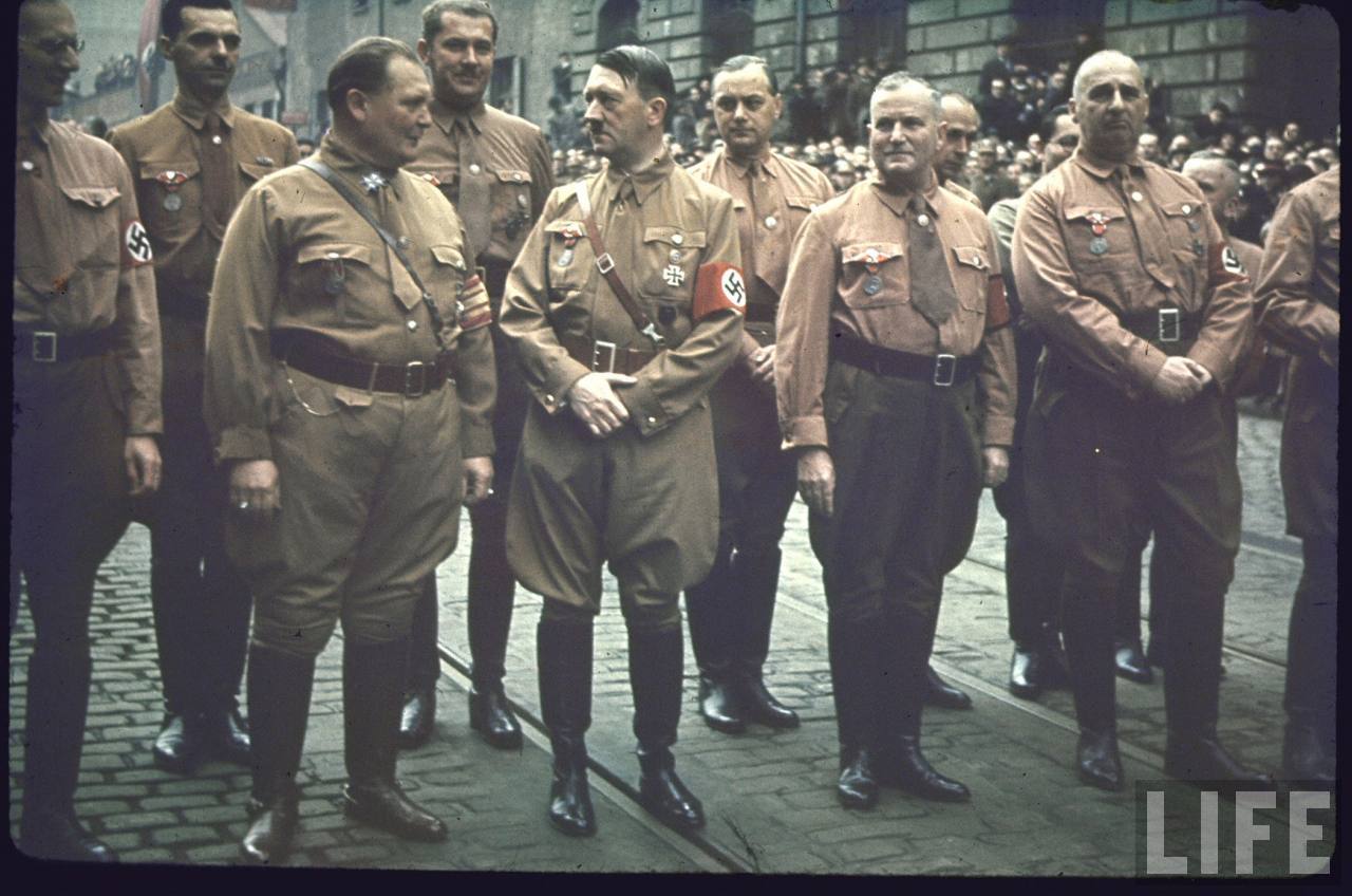 (front, L-R) Friedrich Weber, Hermann Goering, Adolf Hitler, unident. (Martin Bormann?), Julius Streicher;