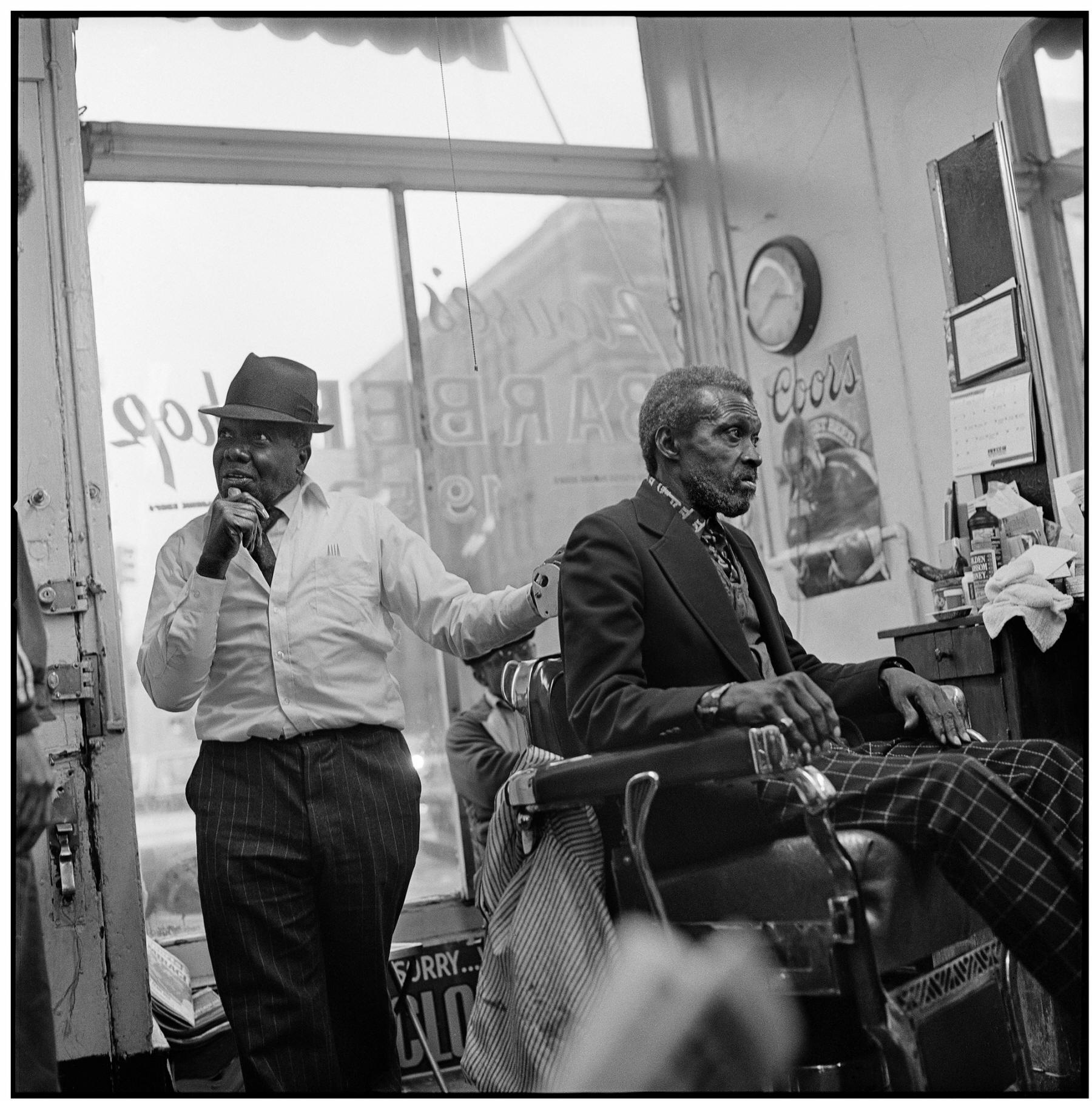 Mr. Ben, left, at House’s Barber Shop. Harlem. 1986-92.