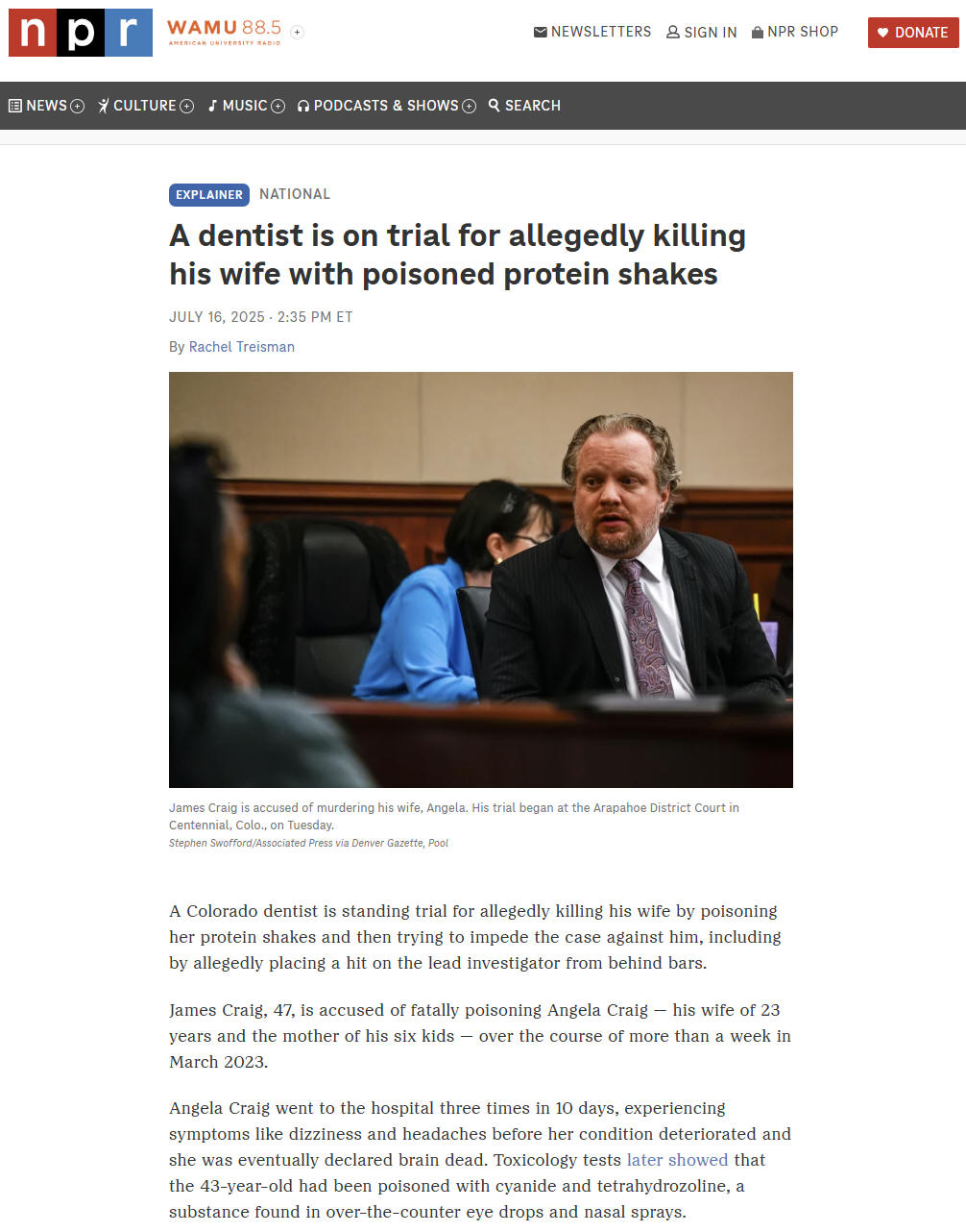 A dentist is on trial for allegedly killing his wife with poisoned protein shakes
