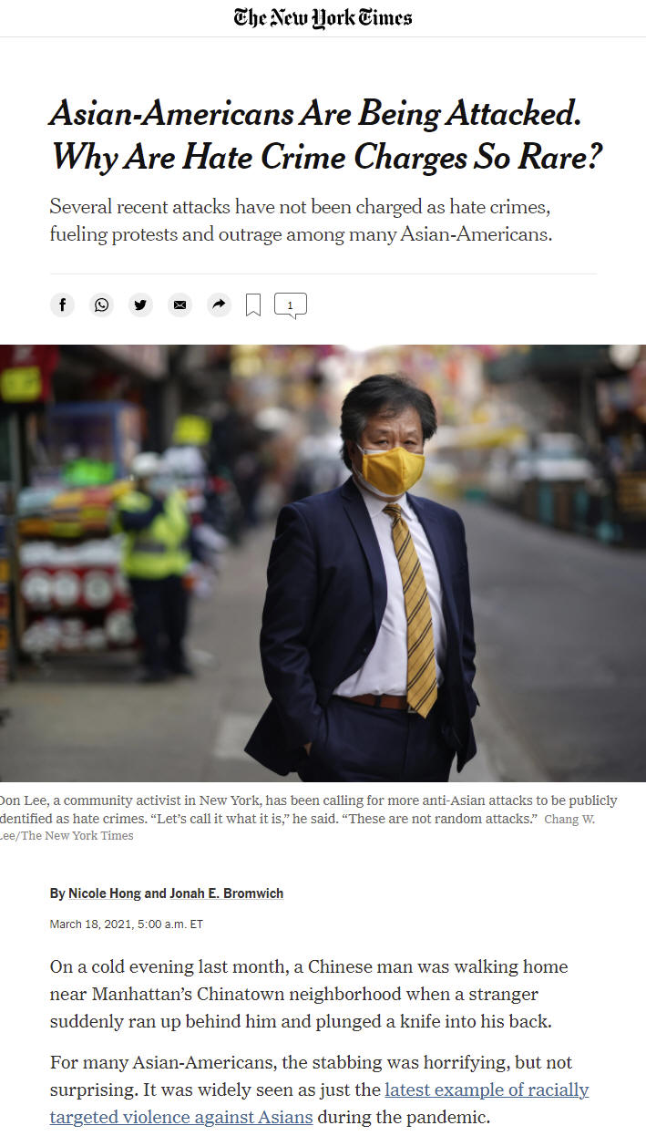 Asian-Americans Are Being Attacked. Why Are Hate Crime Charges So Rare?