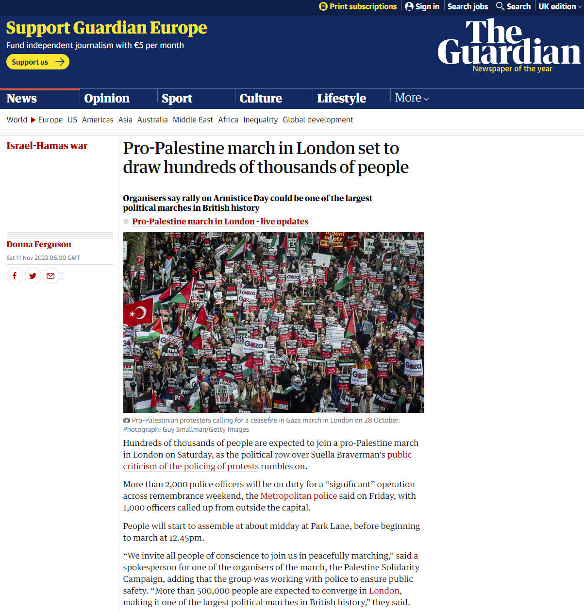 Pro-Palestine march in London set to draw hundreds of thousands of people