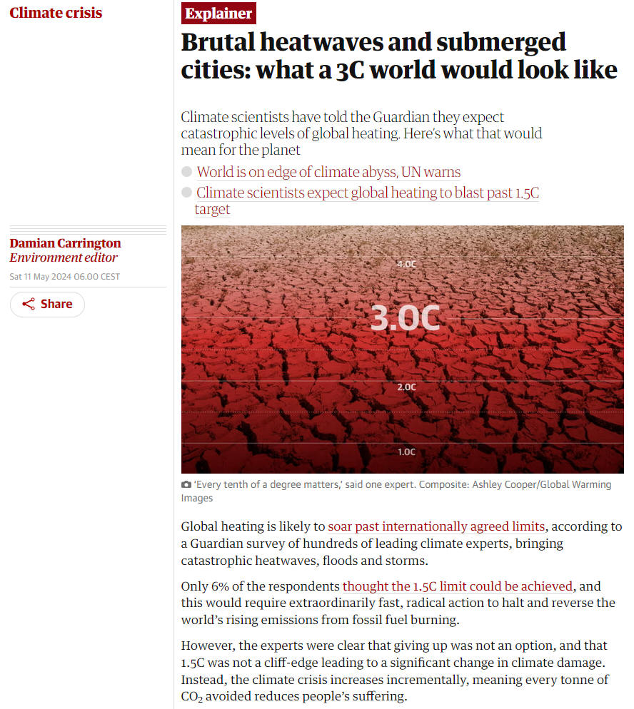 Brutal heatwaves and submerged cities: what a 3C world would look like