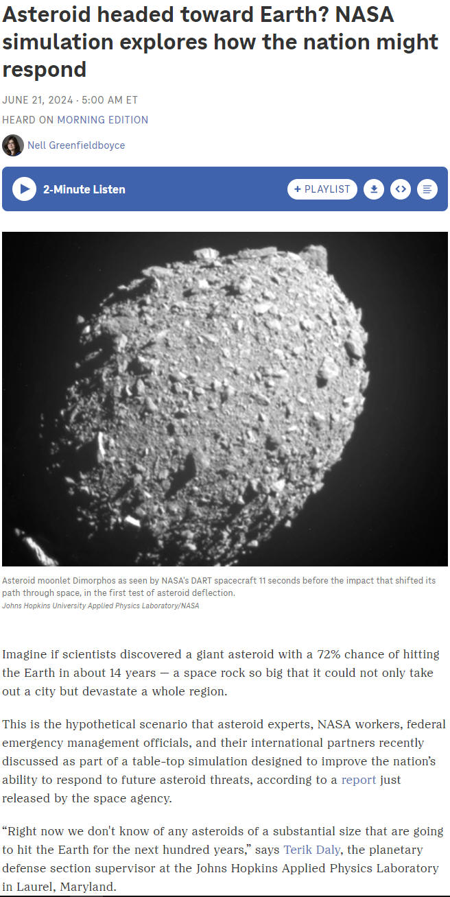 Asteroid headed toward Earth? NASA simulation explores how the nation might respond