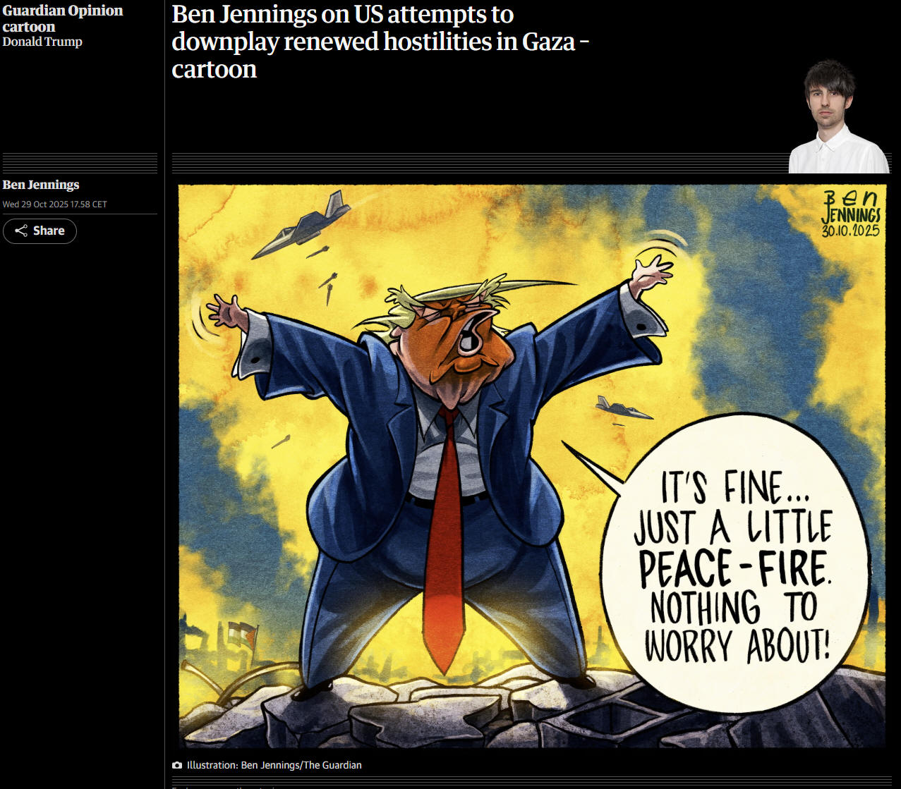 Ben Jennings on US attempts to downplay renewed hostilities in Gaza – cartoon