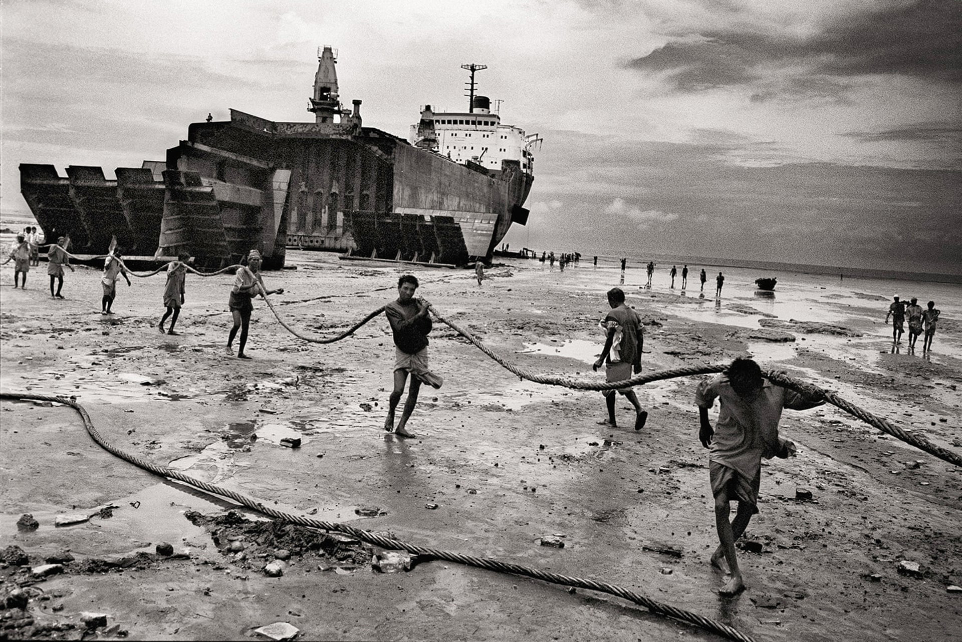to drag a hawser in the ship-breaking yard.