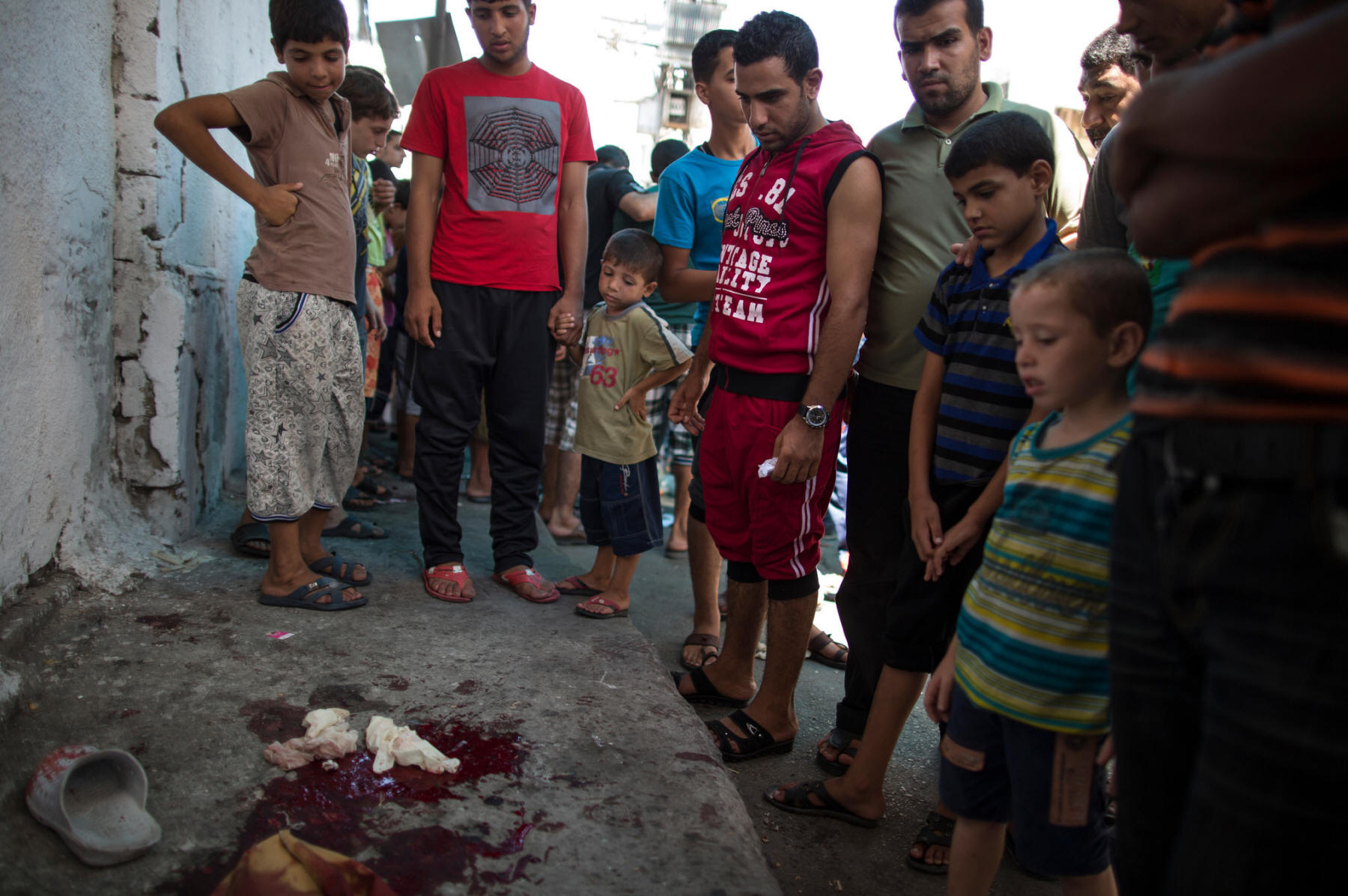 Bloodstains drew onlookers in Gaza City