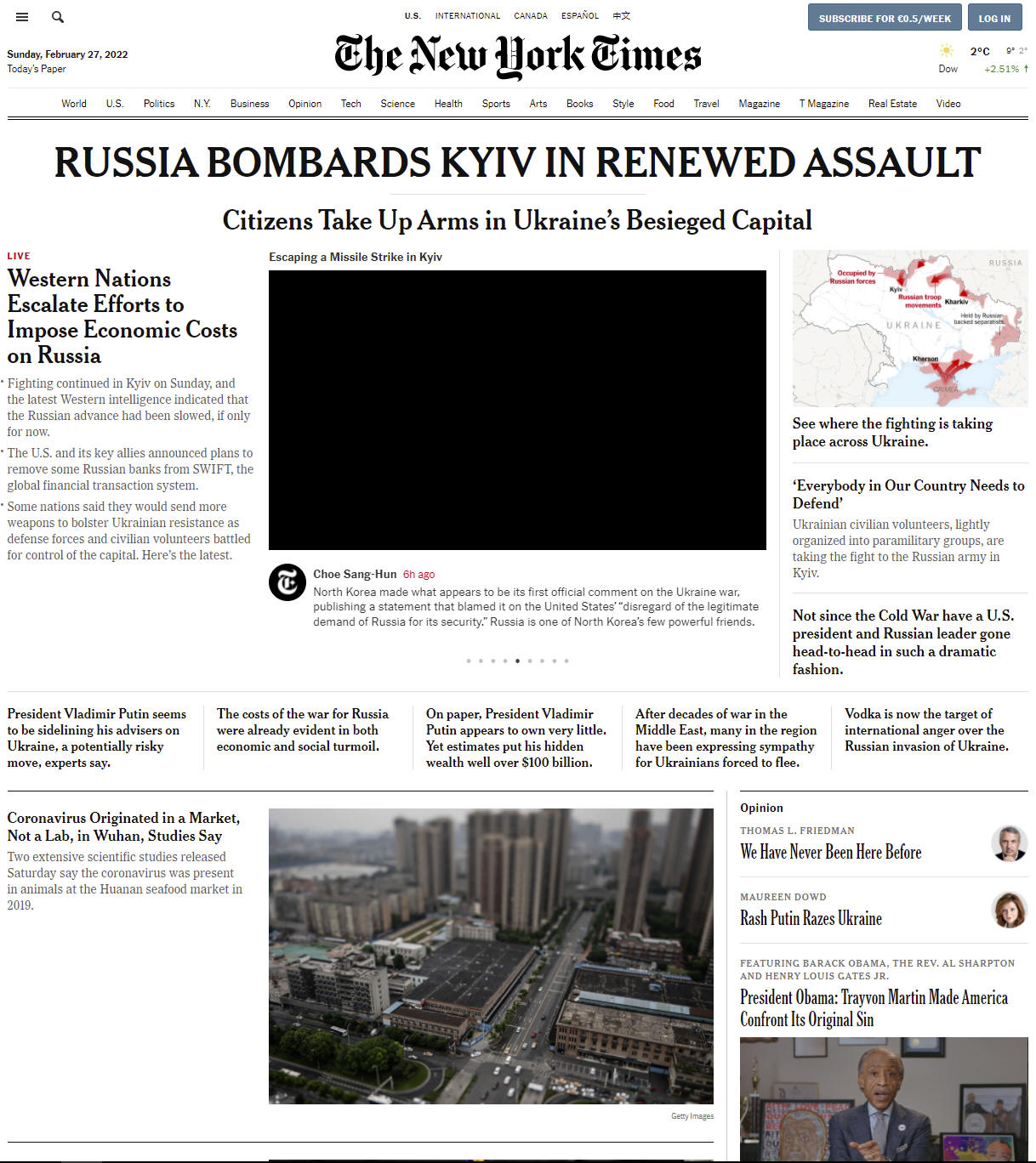(Russian-occupied territory data as of 1 p.m. EST, Feb. 26)