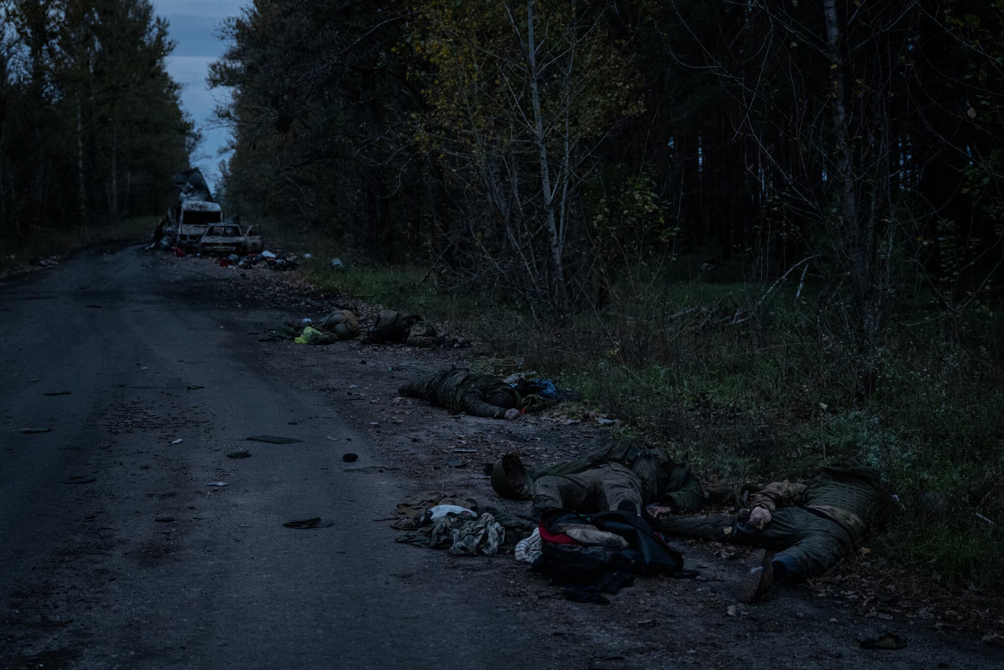 The bodies of Russian soldiers on the outskirts of Lyman, Ukraine, in October.