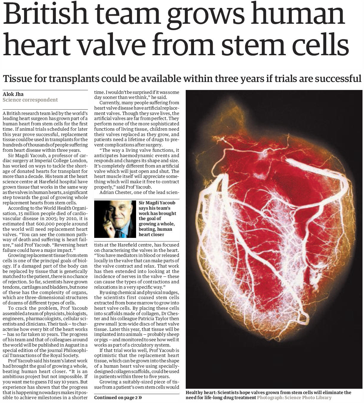 those in the brain, heart and other organs and tissues. Stem cells derived from