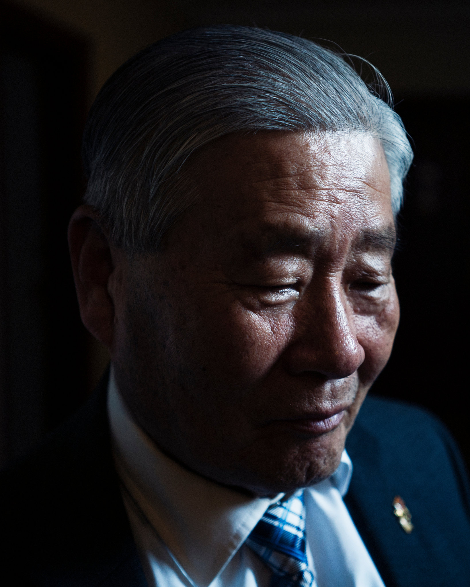 Four hours later, Mr. Taylor, wearing a light blue shirt, emerged from a state