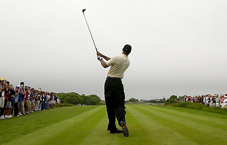 He led by four shots Sunday, and Woods immediately stretched it with an 18-foot