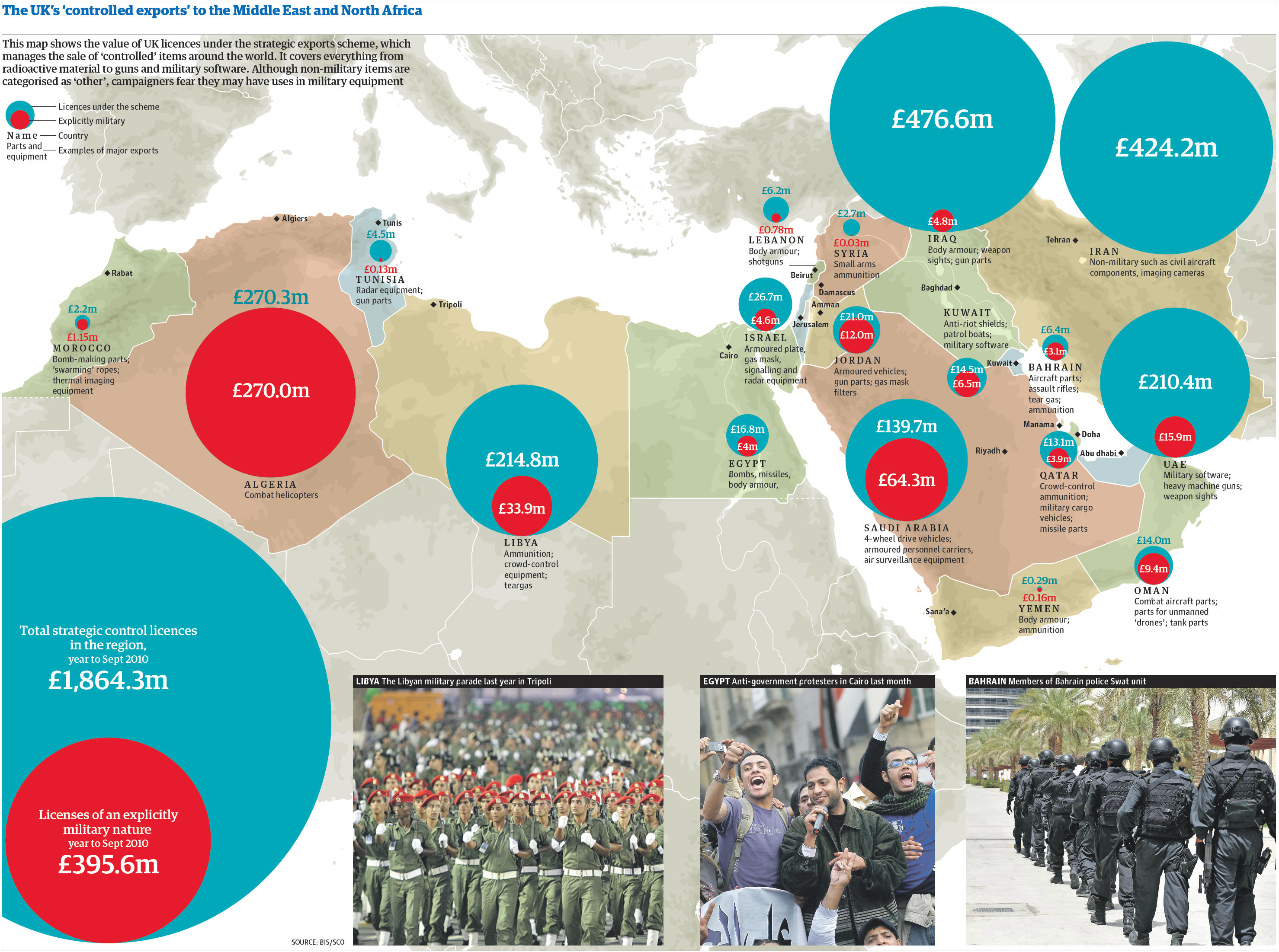 UK sales of weapons and arms to the Middle East are in the news. So what is the market, run by the government's Strategic Export Controls, worth? G 21 February 2011