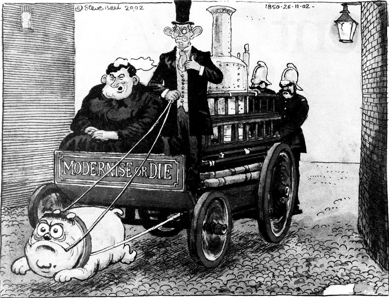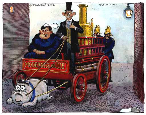 L to R: John Prescott (Deputy Prime Minister and First Secretary of State) as a dog, Gordon Brown (Chancellor of the Exchequer) Tony Blair (Prime Minister)