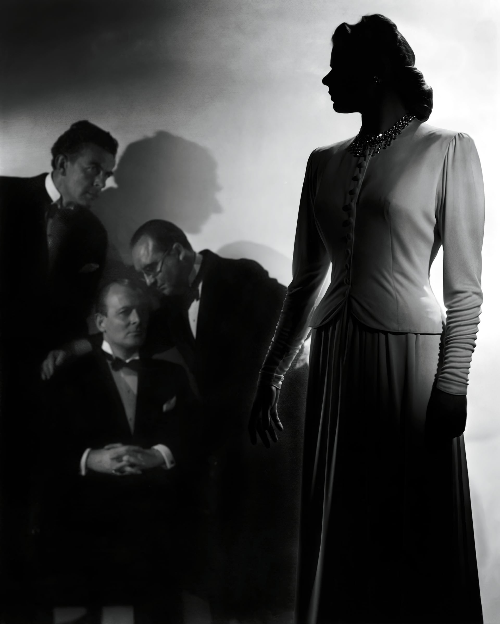 Exceptional portrait of Ingrid Bergman’s silhouette against a background of shady villains played by Friedrich von Ledebur, Peter von Zerneck and EA Krumschmidt.