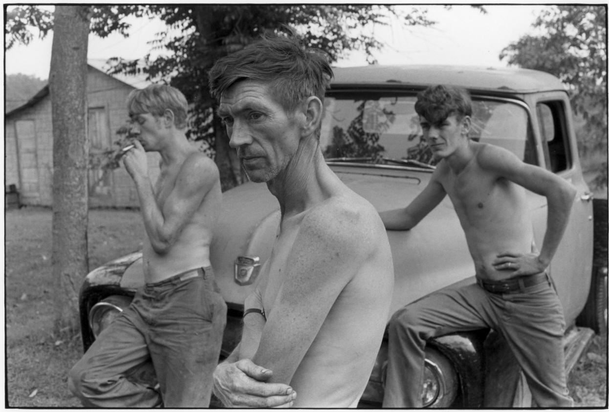 Willie Cornett, others without shirts smoking and leaning on truck. Kentucky. Collection: William Gedney Photographs and Writings Type: Photographs Box Number: 84 Negative Number: 7829-3 Exposure: 1972 Year: 1972 In the permanent collection of the San Francisco Museum of Modern Art (SFMOMA)