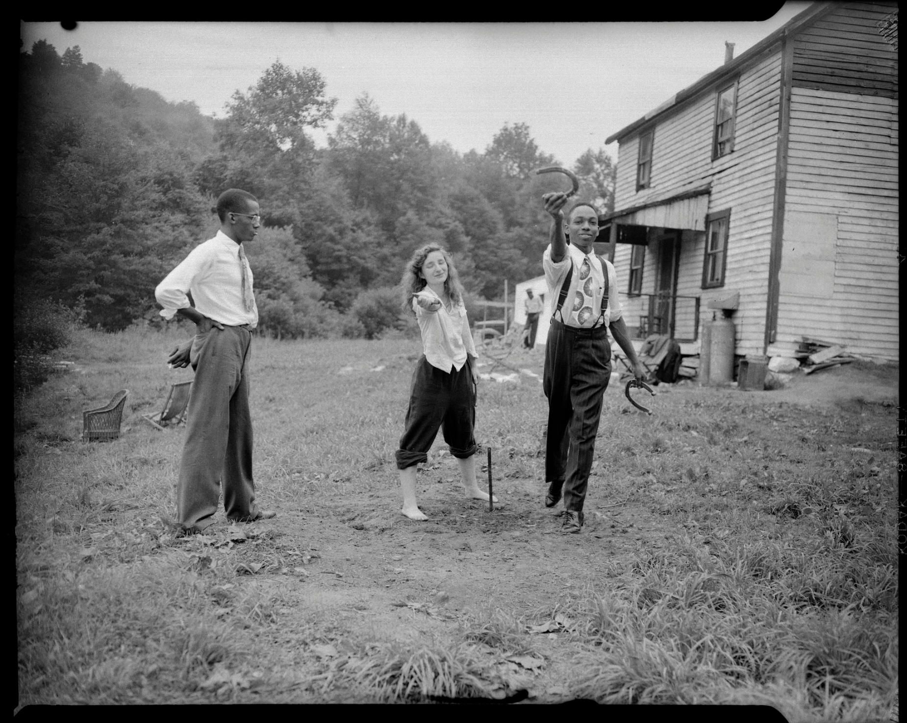 Two young men and a young woman playing horseshoes at Dr. Alma Illery’s Camp Achievement.