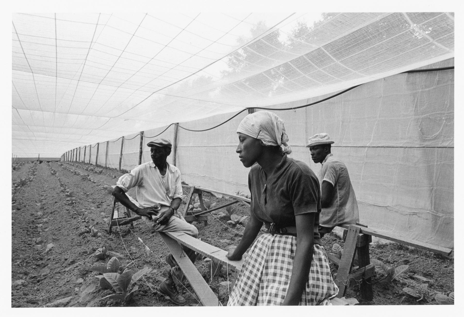 Three workers resting on benches under shade, 1965 Caption by photographer (Kwilecki): "Workers resting in field. They are in the process of stringing the plants up." Paul Kwilecki (1928-2009) Item ID kwlph080010200 Duke University > Digital collections http://library.duke.edu/digitalcollections/kwilecki_kwlph080010200/ http://library.duke.edu/digitalcollections/kwilecki/