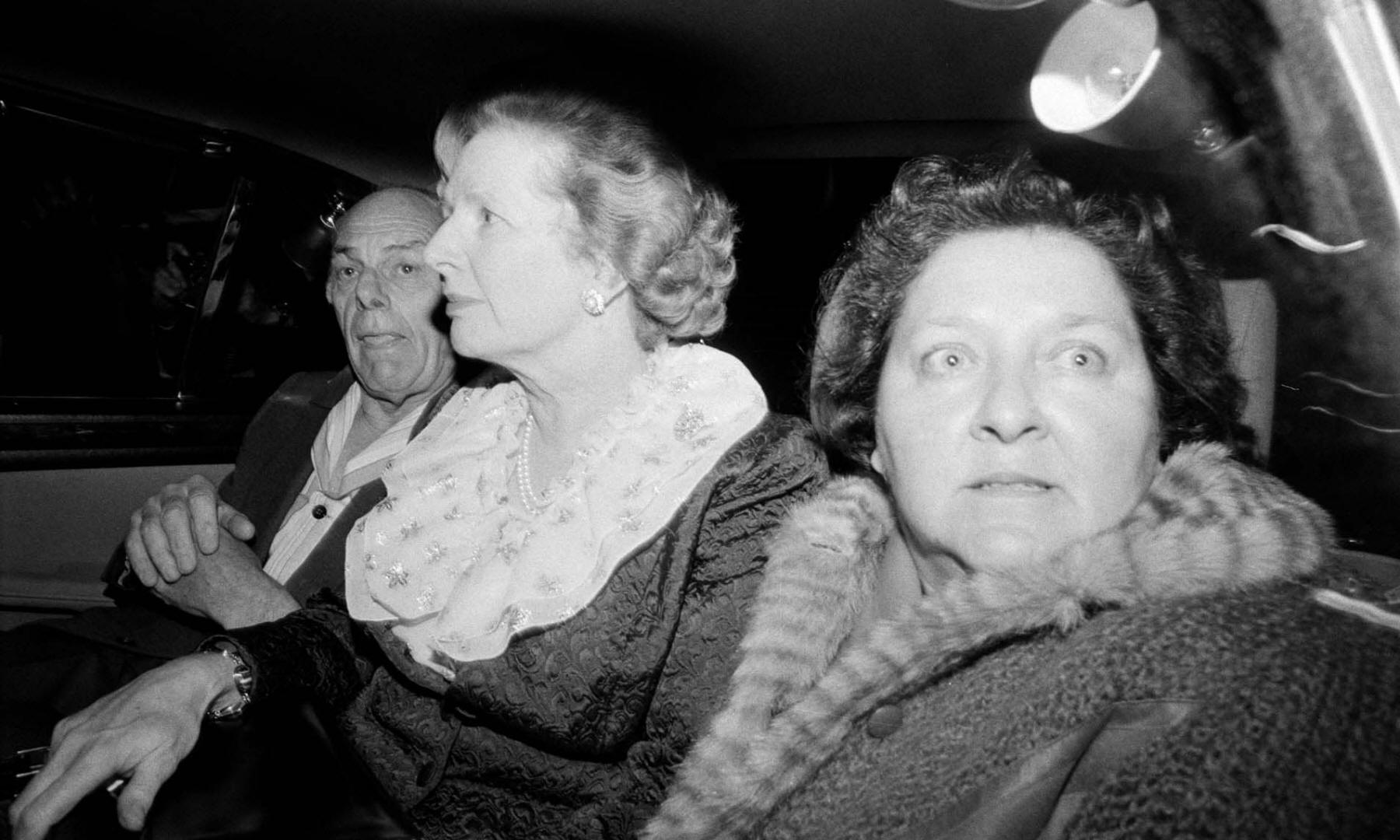 husband Denis and friend and aide Cynthia Crawford leave Brighton’s Grand Hotel after the IRA bomb attack, 12 October 1984
