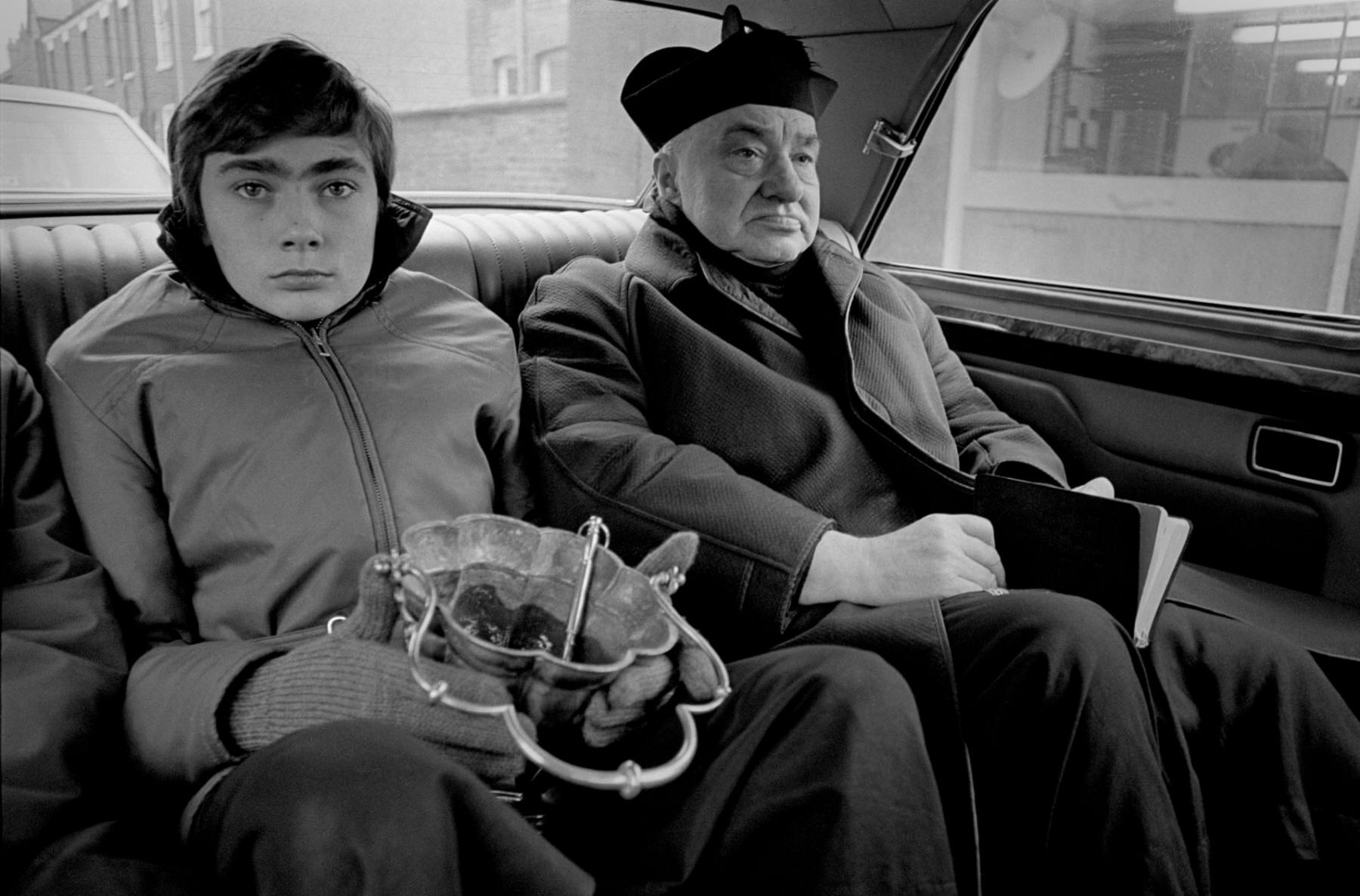 Polish priest on his way to a funeral, Loughborough, 1975