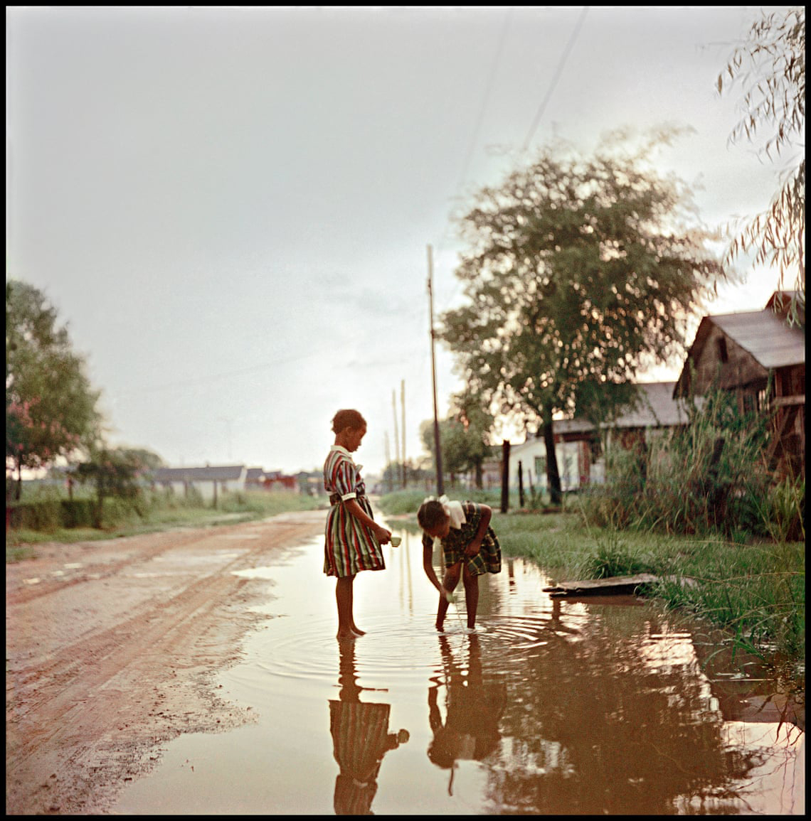 Parks employed a handheld, twin-lens Rolleiflex camera to photograph the daily lives of the Thornton family and their extended relatives, among them the Causey and Tanner families.