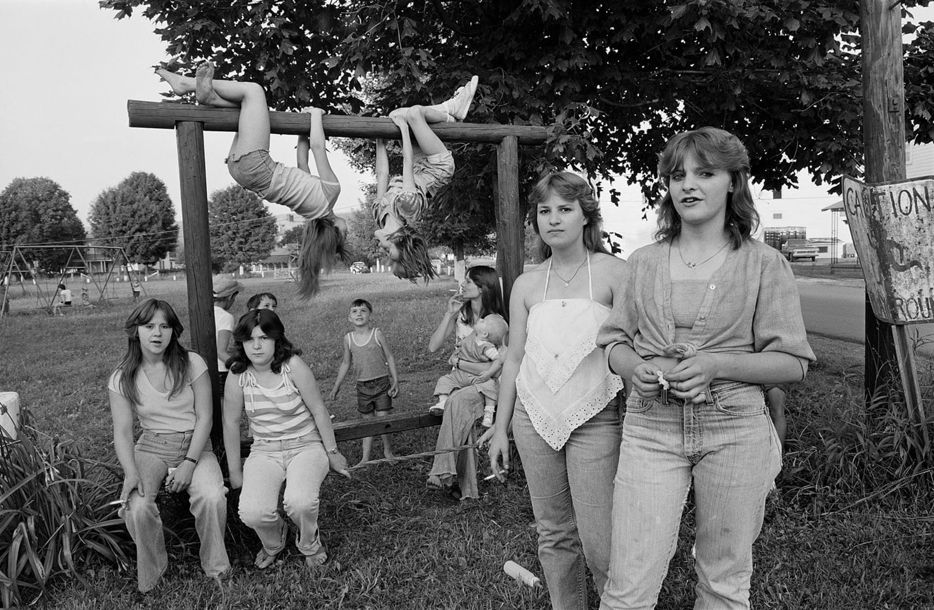 ‘These young women seem to be as curious about me as I am about them. The presence of so many cigarettes is typical of the 1980s, and I love the wonderful spontaneity of the younger girls hanging upside down in the background. It’s kind of like a play-within-a-play’