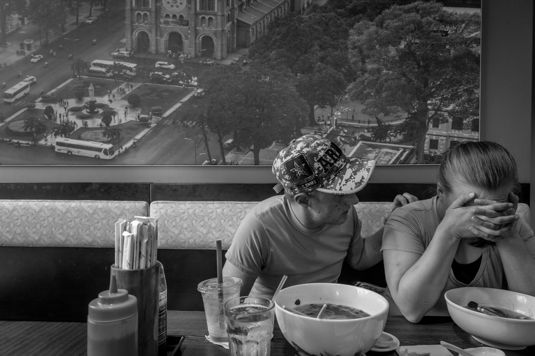 He comforted his wife, Rachel, while out to dinner in Salt Lake City after they had been evicted from their apartment complex.