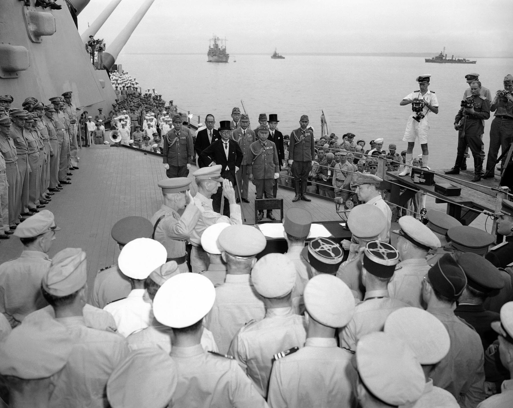 Mr. Desfor photographed the official Japanese surrender ceremony aboard the U.S.S. Missouri in Tokyo Bay on Sept. 2, 1945.
