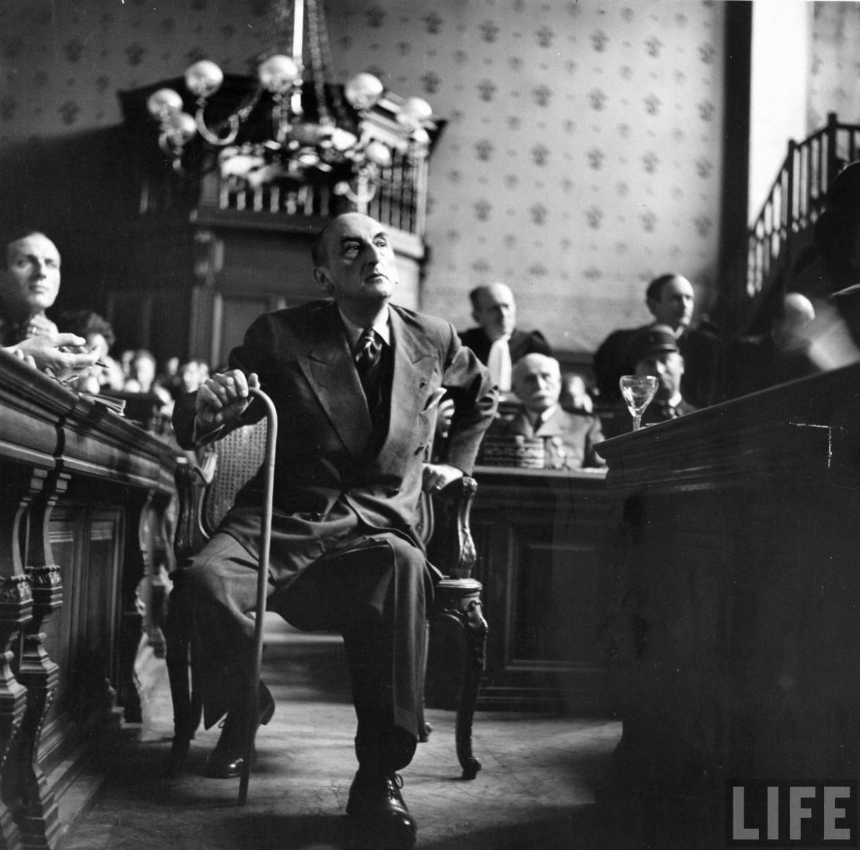 Convicted in absentia of treason and consorting with the enemy for helping to torture and kill Resistance members, he was sentenced to death just after the war. he remained free for a while by using phony identity papers and earning money by selling bootleg chocolate to candy stores and passing counterfeit currency.
