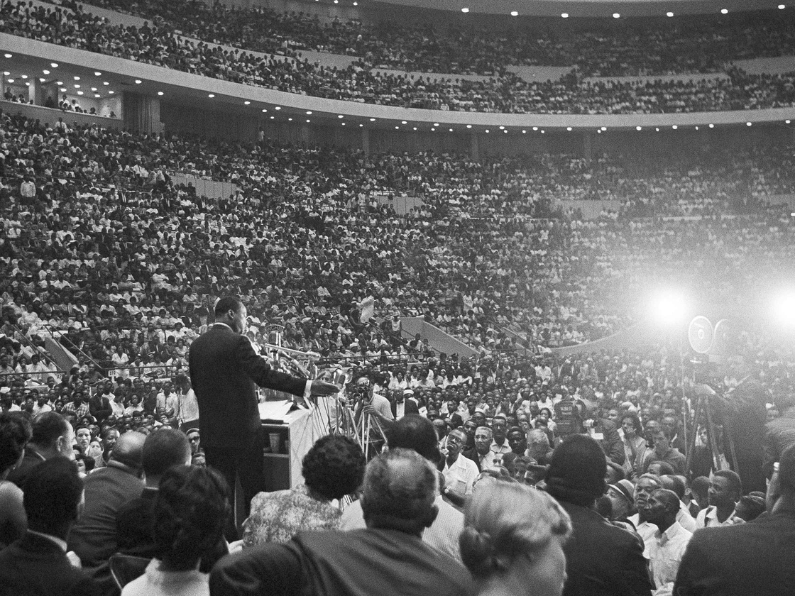 Martin Luther King, Jr. speaks to a crowd in Detroit on June 23, 1963.