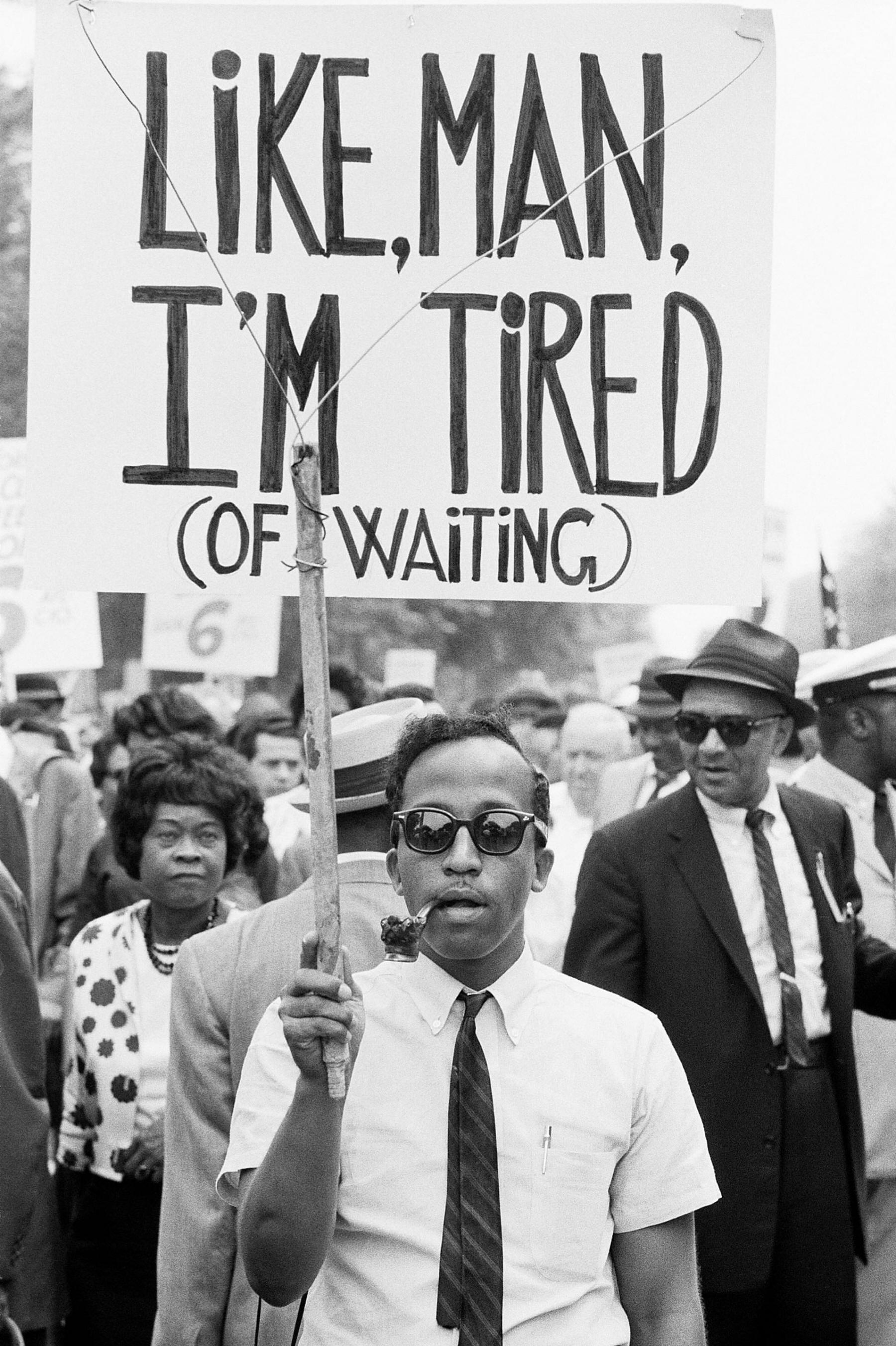 A protester at the March on Washington for Jobs and Freedom on 28 August 1963.