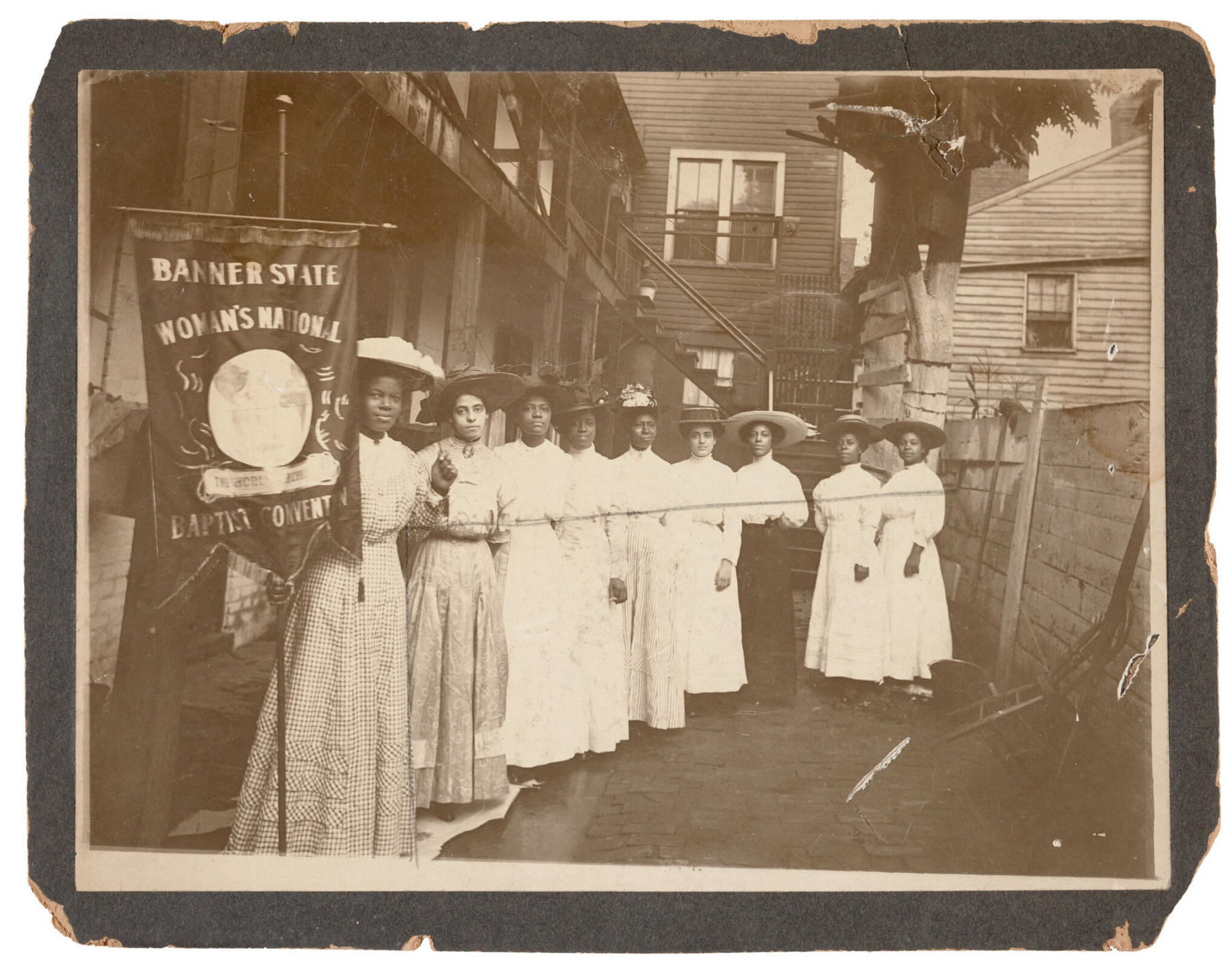 Nannie Helen Burroughs (left, holding banner, circa 1910) was a leader of the Woman’s National Baptist Convention and an advocate for women’s suffrage.
