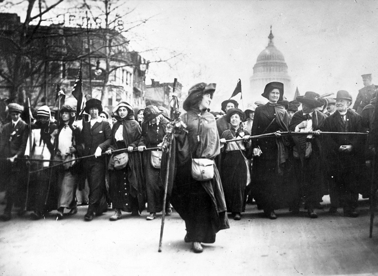 Suffragette Rosalie Jones leads a crowd of protesters up Pennsylvania Avenue after a march from New York in 1913.
