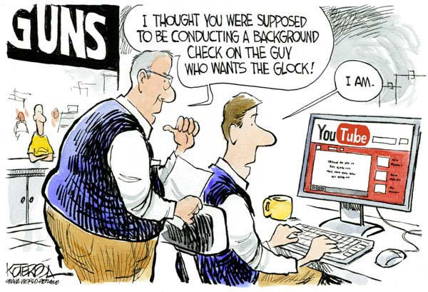 I thought you were supposed to be conducting a background check on the guy who wants the Glock!