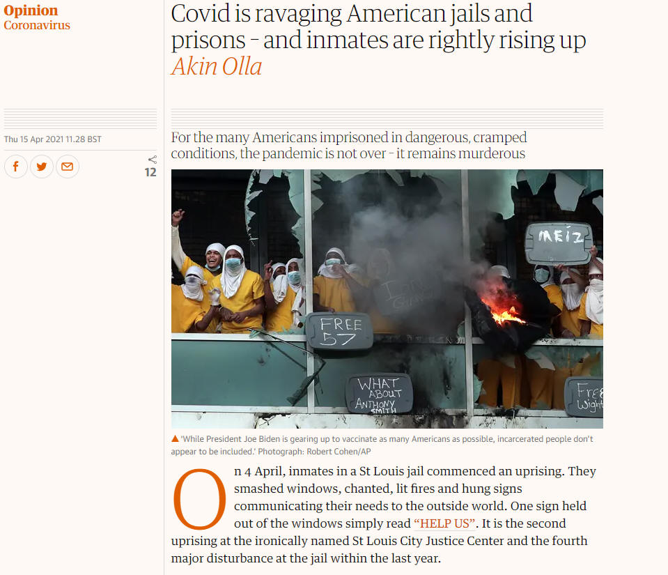 Covid is ravaging American jails and prison. - and inmates are rightly rising up