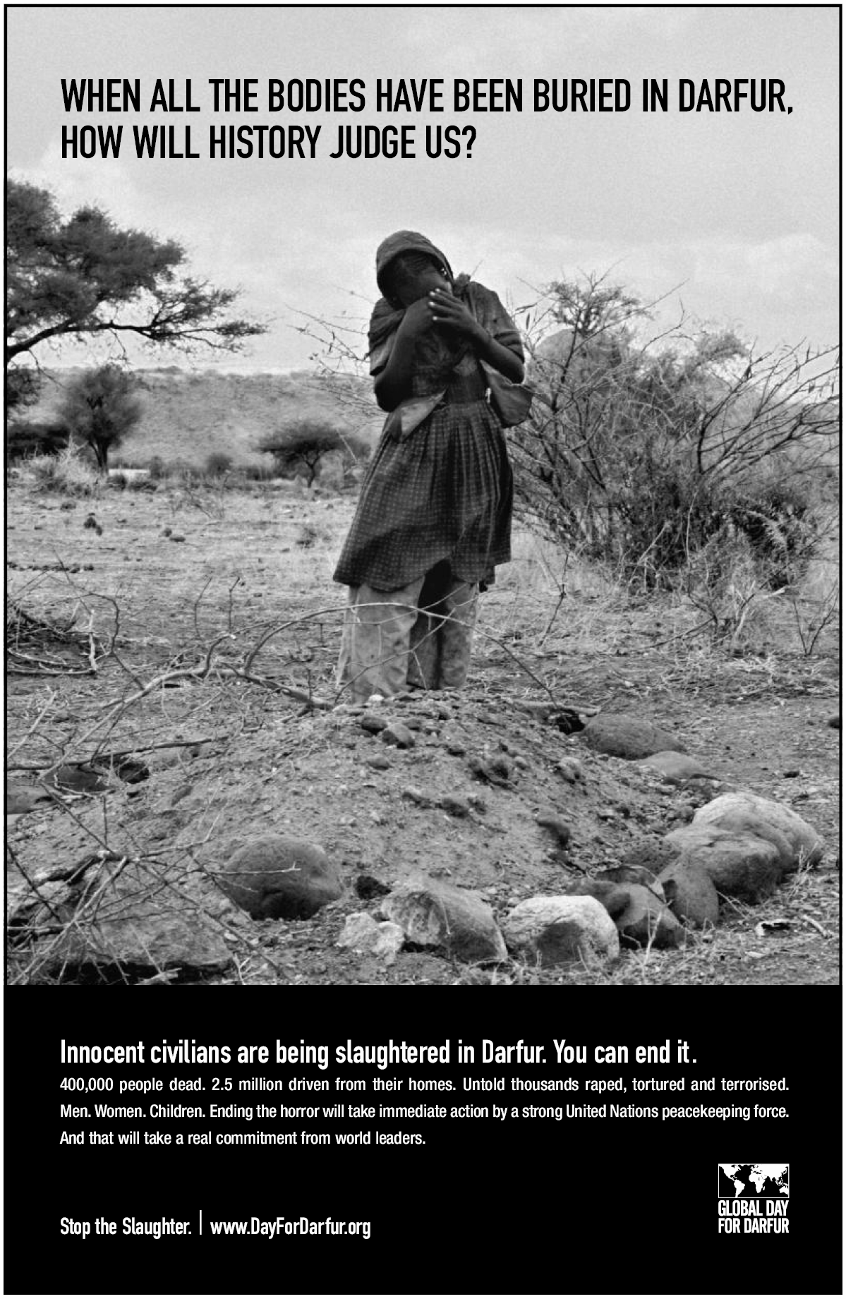When all the bodies have been buried in Darfur, [ present perfect passif ] how will history judge us?