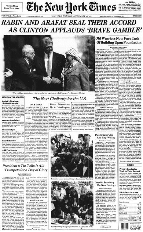 process. YITZHAK RABIN Prime Minister of Israel Arafat to Rabin Sept. 9, 1993