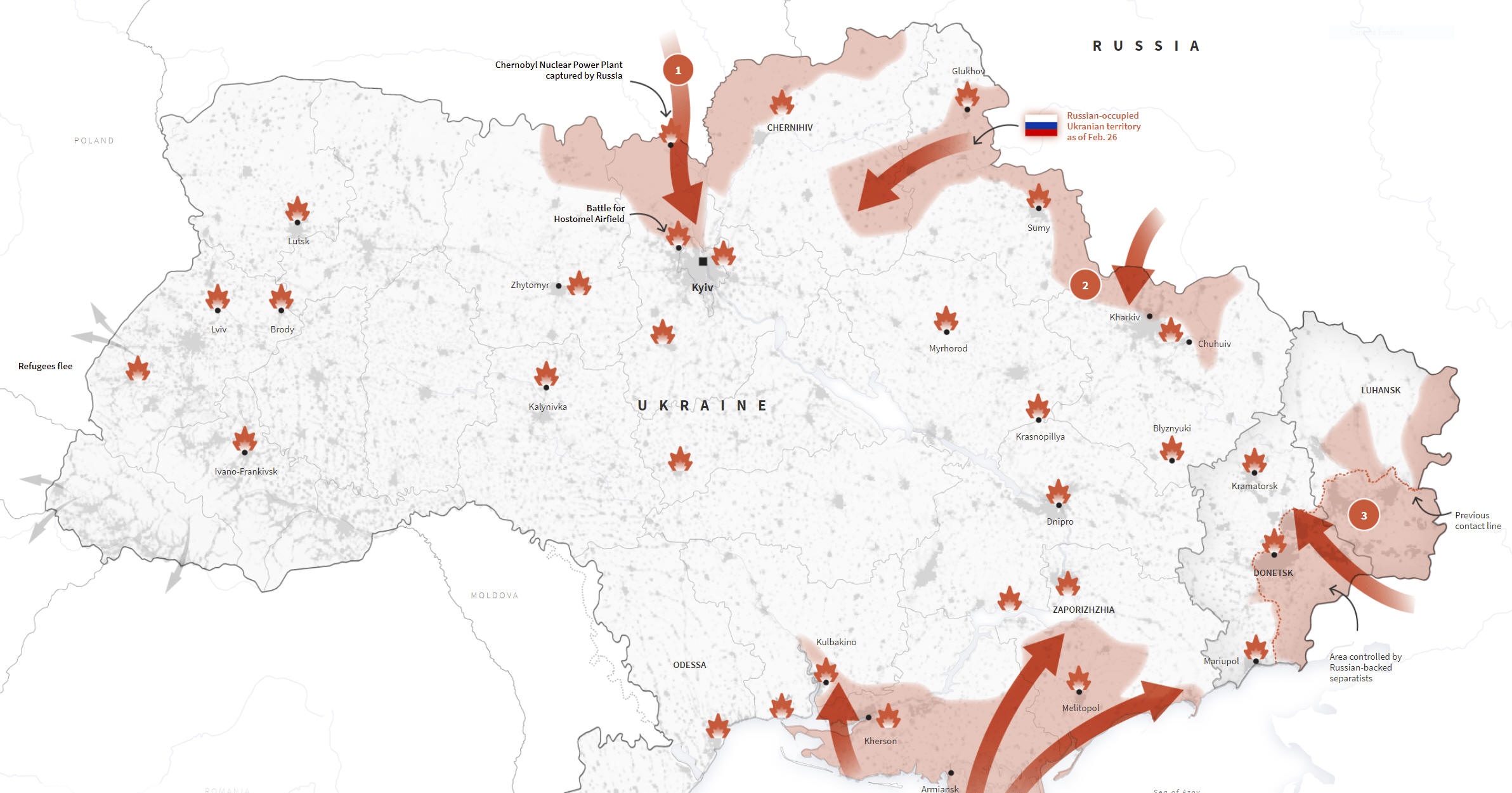(Russian-occupied territory data as of 1 p.m. EST, Feb. 26)