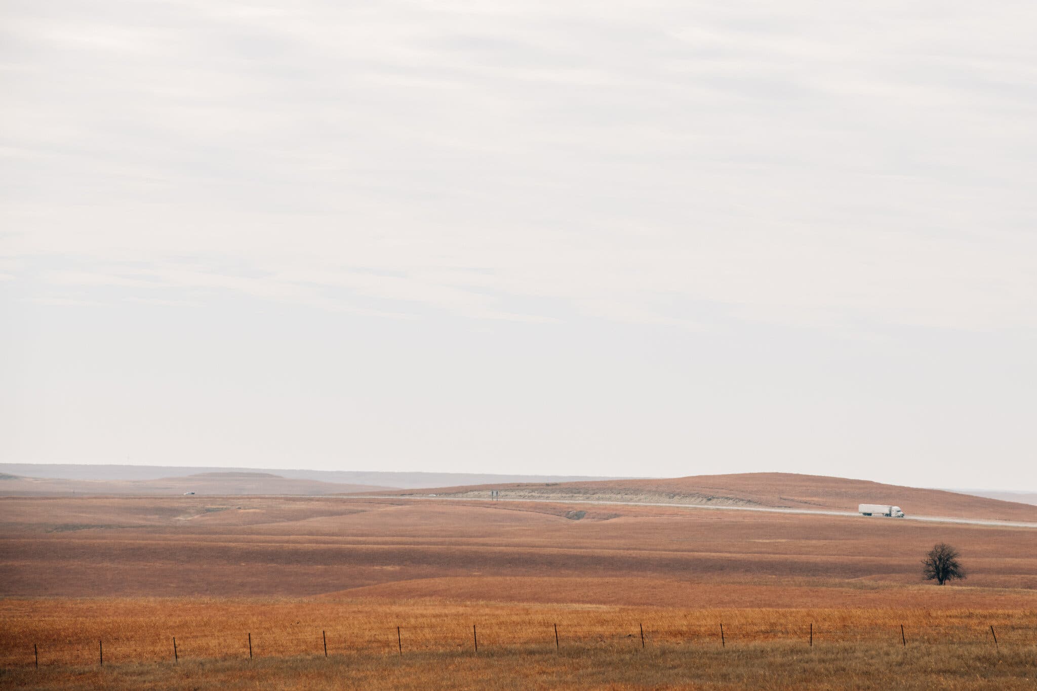 Along I-35 in Kansas. Long-haul drivers endure the pressures of a stressful job, intensified by the supply chain disruption.