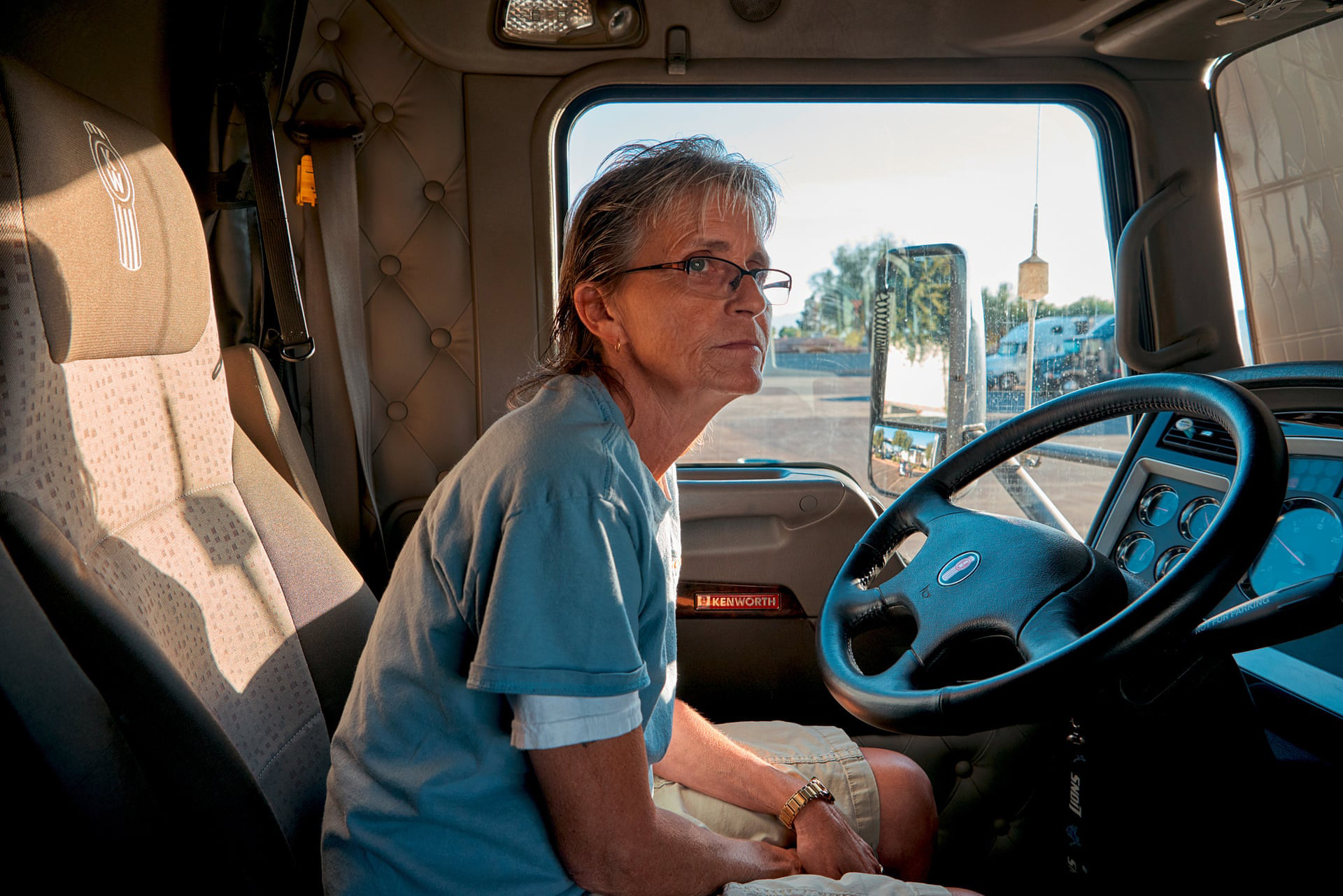 ‘I’ve been out here 50 years. Even got a truck-stop named after me. I currently drive high security, my trailer is lined with Kevlar. At 64 they gave me a gun and taught me how to use it. Never seen one before in my life. It’s a good job and I earn good money. I have a partner but, to be real honest with you, if he went away it wouldn’t bother me. I’m perfectly capable of taking care of myself. When I can’t drive I don’t want to exist anymore. When I can’t do this or be a part of it .. I’m done’