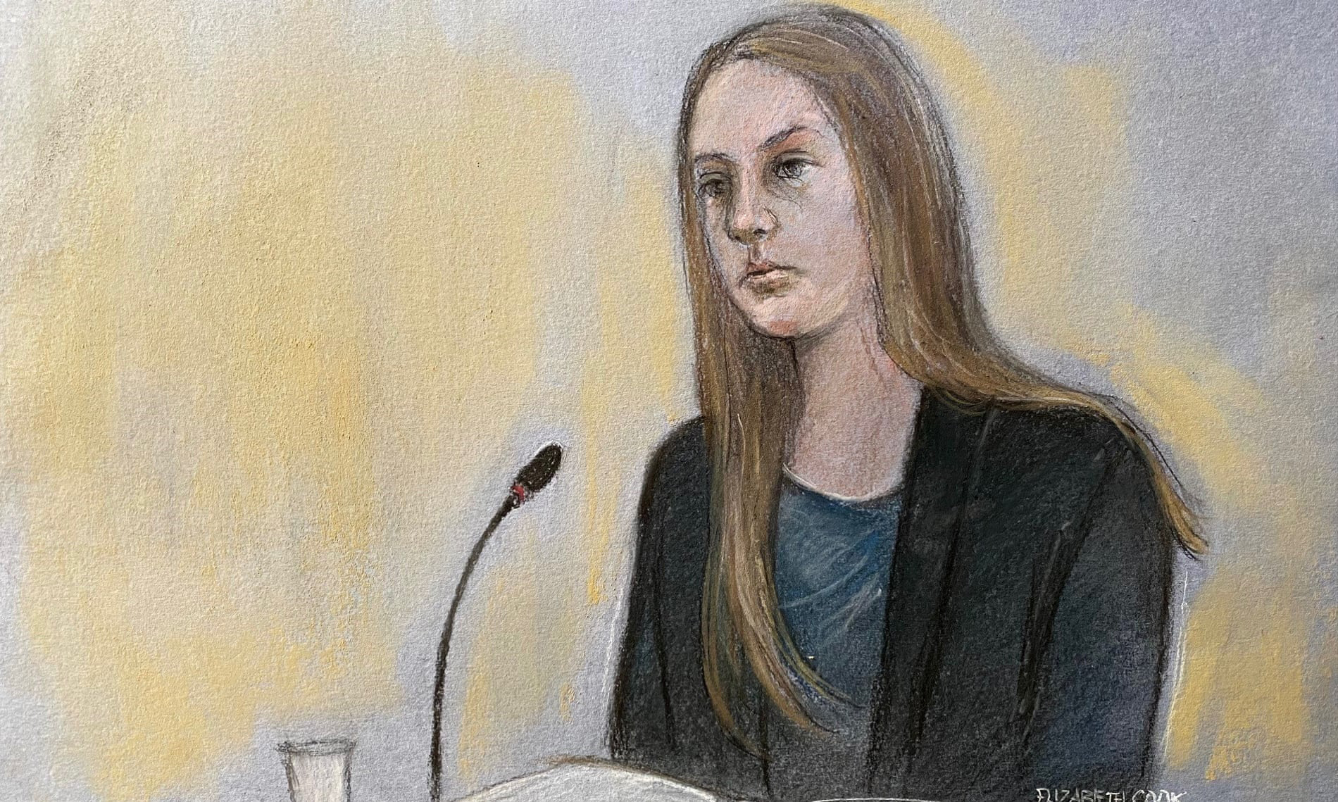 A court artist drawing of Lucy Letby giving evidence during her trial.