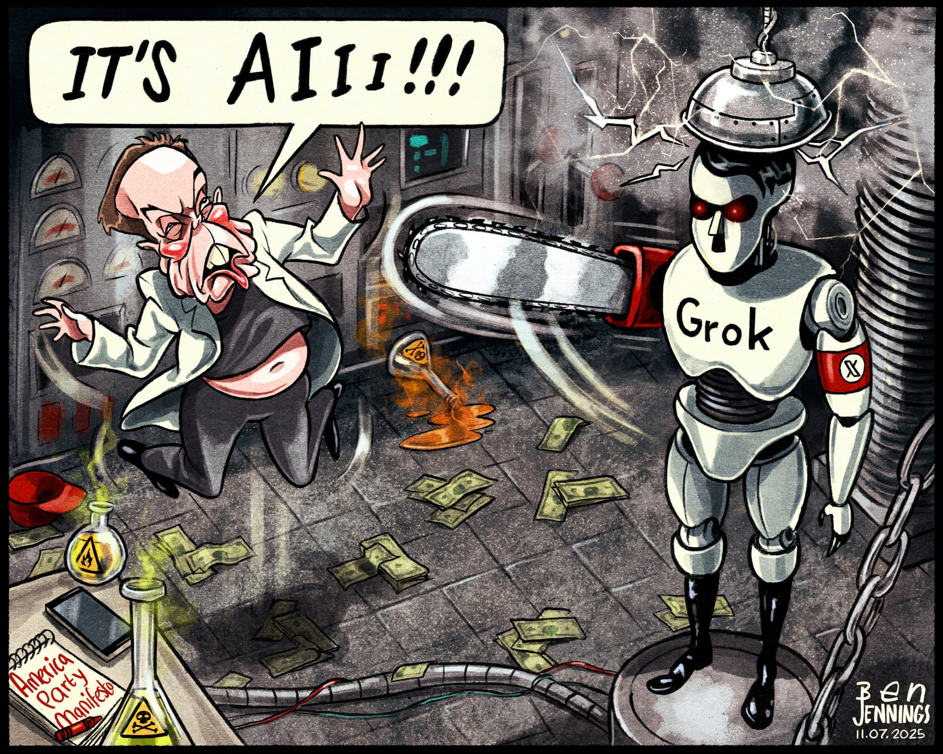 ben-jennings-elon-musk-ai-chatbot-xai-x-antisemitism-cartoon